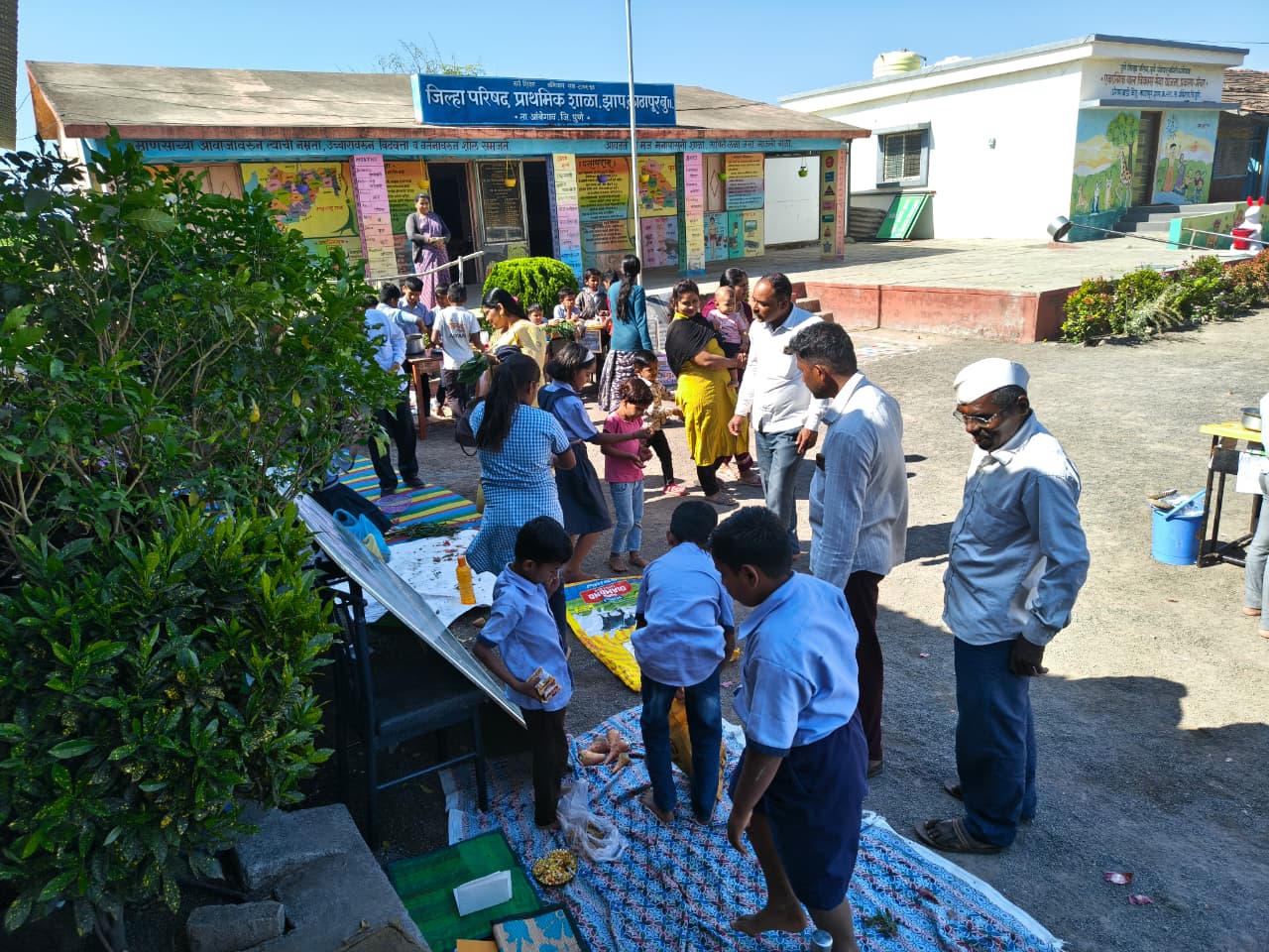 काठापुर बुद्रुक तालुका आंबेगाव येथील झाप गणेशनगर शाळेमध्ये आठवडी बाजाराचे आयोजन करण्यात आले होते. यावेळी पालेभाज्या, फळे, किराणा साहित्य, खाद्यपदार्थ विक्रीसाठी ठेवले होते. मोठ्या प्रमाणावर पालक व ग्रामस्थांनी या पदार्थांची खरेदी केली. याप्रसंगी शाळा व्यवस्थापन समितीचे अध्यक्ष सागर जाधव, उपाध्यक्ष सचिन नरे,माजी उपसरपंच विशाल करंडे,अरविंद जाधव, सोमनाथ जाधव,रवींद्र करंडे,हौशीराम जाधव, प्रवीण शेटे, स्वप्नील शेटे,मुख्याध्यापक संजय घोटकर वि.गो.साळवे,सिमा बानखेले, संध्या करंडे,वर्षा जाधव उपस्थित होते.